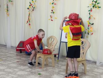 В игре приняли участие две команды «Смельчаки» и «Ловкачи», по 7 человек в каждой команде. Игра состояла и восьми этапов, где ребята не только отгадывали загадки и угадывали сказки на противопожарную тематику, но и вызывали пожарных, пробирались по задымленному помещению, разбирали завалы, скатывали на скорость пожарные рукава и даже оказывали первую помощь пострадавшему. Последним был конкурс капитанов, где ребята надевали обмундирование пожарного на скорость.