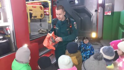 Сегодня, на экскурсии в пожарно-спасательного части 56 побывали воспитанники детского сада «Рябинка». Инспектор пожарного надзора рассказала и показала на экспонатах об основных причинах пожаров, показала ребятам обучающий мультфильм, напомнила алгоритм правильных действий при возникновении пожара и номера телефонов экстренных служб. Так же инспектор рассказала ребятам о первичных средств пожаротушения и спасения людей и принципах их действия.