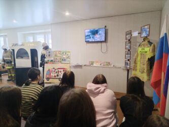 Уже традиционно экскурсия началась с посещения музея пожарной части, где ребятам продемонстрировали  обучающий фильм о профессии пожарного- спасателя и правилах поведения при пожаре.